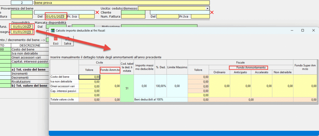 4.2.2.4 Inserimento dei beni presenti nel registro dei beni ammortizzabili alla data del 31/12/anno