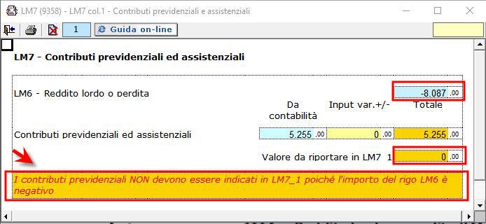 La gestione presente nel primo campo del rigo LM7 gestisce il riporto o meno dei contributi previdenziali nel campo. Infatti tale importo va indicato solo se il rigo LM6 è positivo.