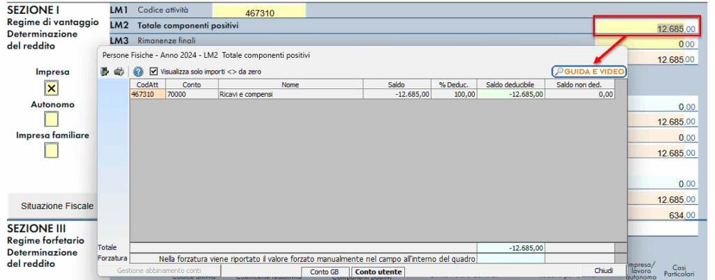 - in automatico dal software, nel caso di utilizzo del modulo contabilità GB. I dati provengono direttamente dalle scritture contabili ed è possibile visualizzare il dettaglio degli importi, che determinano il risultato riportato nel rigo, facendo doppio click nei campi di colore giallo intenso/celeste.