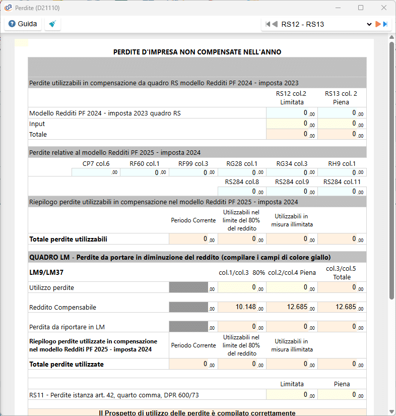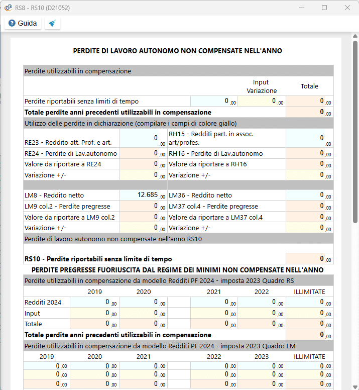 Nel caso in cui si tratti di un contribuente che nel periodo d’imposta precedente ha adottato il regime dei contribuenti minimi o dei contribuenti forfetari, nei righi LM9/LM37 vanno indicate le eventuali perdite indicate nei righi LM50 e LM51 del Modello Redditi PF 2024.