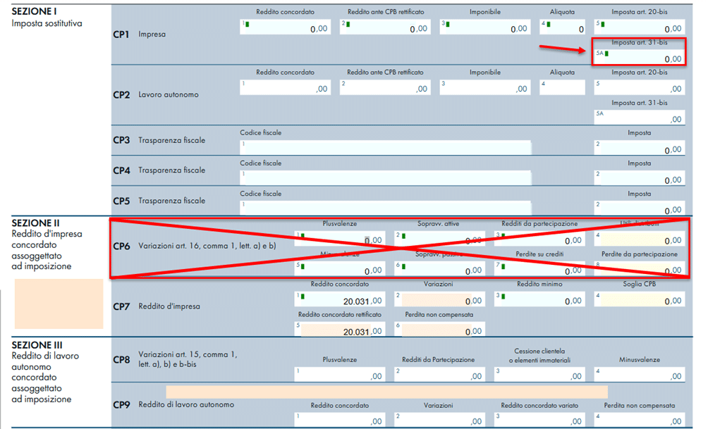 - compila il quadro CP dove può determinare comunque l’imposta sostitutiva art.31-bis
