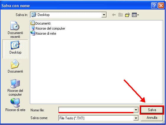 Successivamente andare a selezionare il percorso di dove voler salvare il file (consigliato il Desktop), digitare il nome del file e cliccare sul pulsante "Salva".