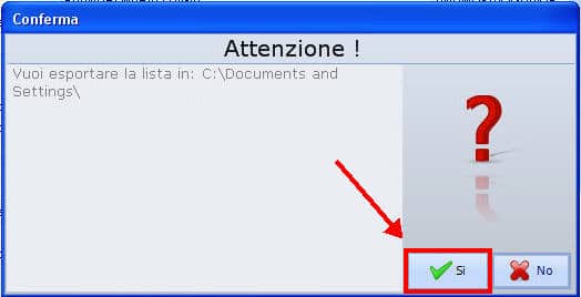 Subito dopo apparirà un messaggio di conferma per l’esportazione della lista con i dati delle Ditte, cliccare su "Si".