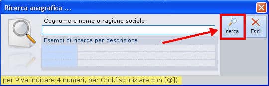 Da qui si aprirà una maschera dove è necessario cliccare sul pulsante "cerca".