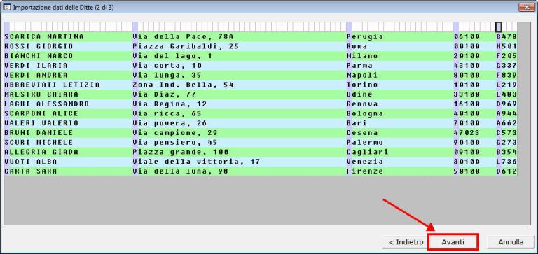 In automatico il software raccorderà i campi presenti nel file da importare con l’anagrafica ditte di GBsoftware, cliccare su Avanti per proseguire.