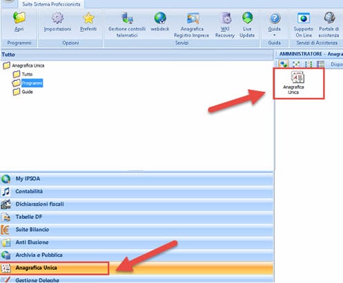 Dal primo menu accedere alla sezione Anagrafica Unica.