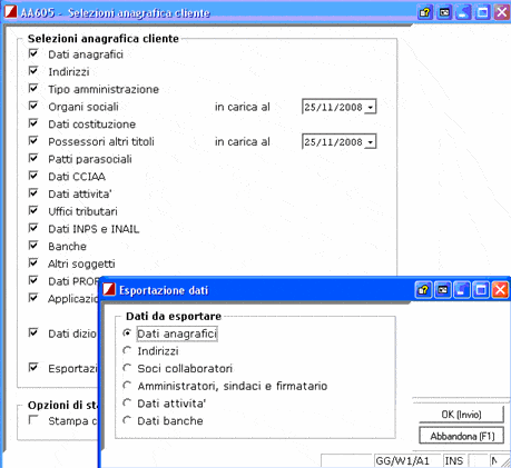 A questo punto si potrà visualizzare una maschera che permetterà di selezionare i dati da esportare, confermare la scelta con il pulsante OK.