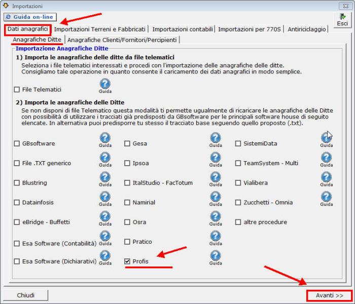 2. Importazione delle Anagrafiche ditte in GBsoftware (file di esportazione creato da Profis) da .txt