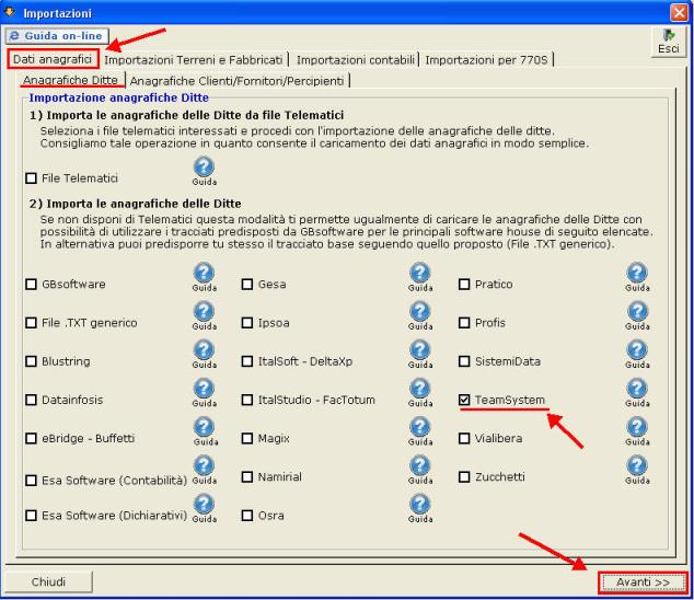 N.B. Dal gestionale Teamsystem è possibile importare le anagrafiche sia da gestionale Multi (Contabilità) che da Dired (Dichiarativi).