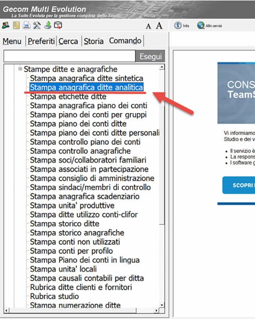 Per prima cosa effettuare l’esportazione delle anagrafiche ditte da TeamSystem.