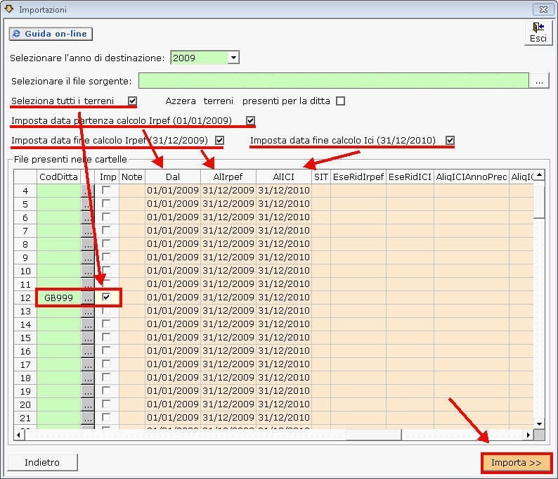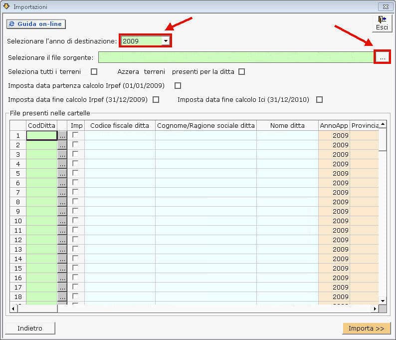 L’ importazione sarà possibile solo per quei terreni a cui corrisponde una ditta valorizzata nella prima colonna.