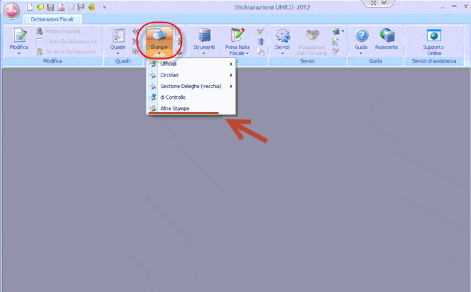Nella nuova schermata cliccare su "Stampe" e dal menù che si aprirà selezionare "Altre Stampe".