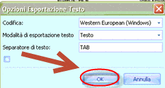 Nella finestra che si aprirà, si ha la possibilità di scegliere l’intervallo dei clienti dei quali esportare i terreni.