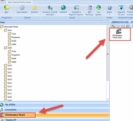 Dal sottomenù successivo selezionare "Programmi" e infine dalla finestra principale cliccare sull’icona "Dichiarazioni Fiscali".