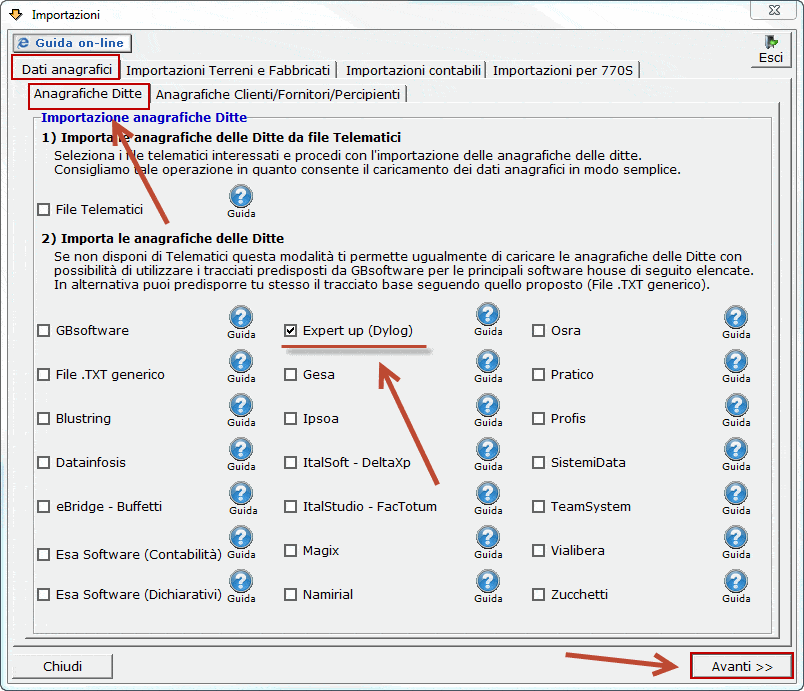 Importazione anagrafiche Ditte da file Dylog – Expert Up