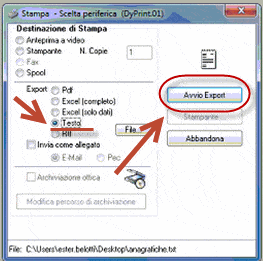 Infine scegliere Export in file di testo e cliccare Avvio Export.